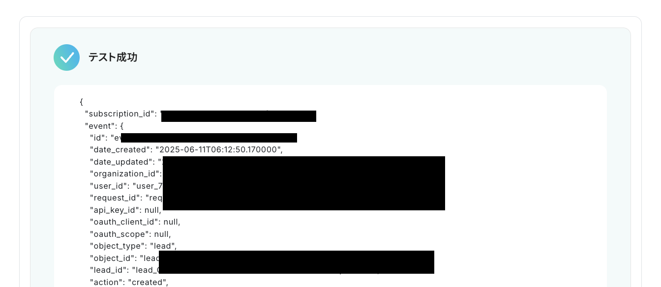 テストに成功すると、トリガーとなるイベントを検知して情報を取得できます。
