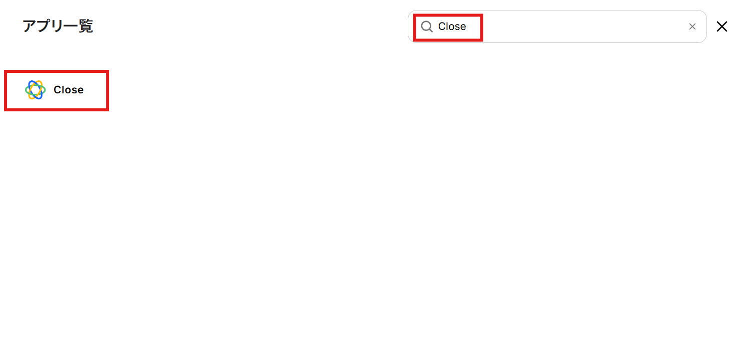 検索ボックスにCloseと入力し、Closeのアイコンをクリックします。