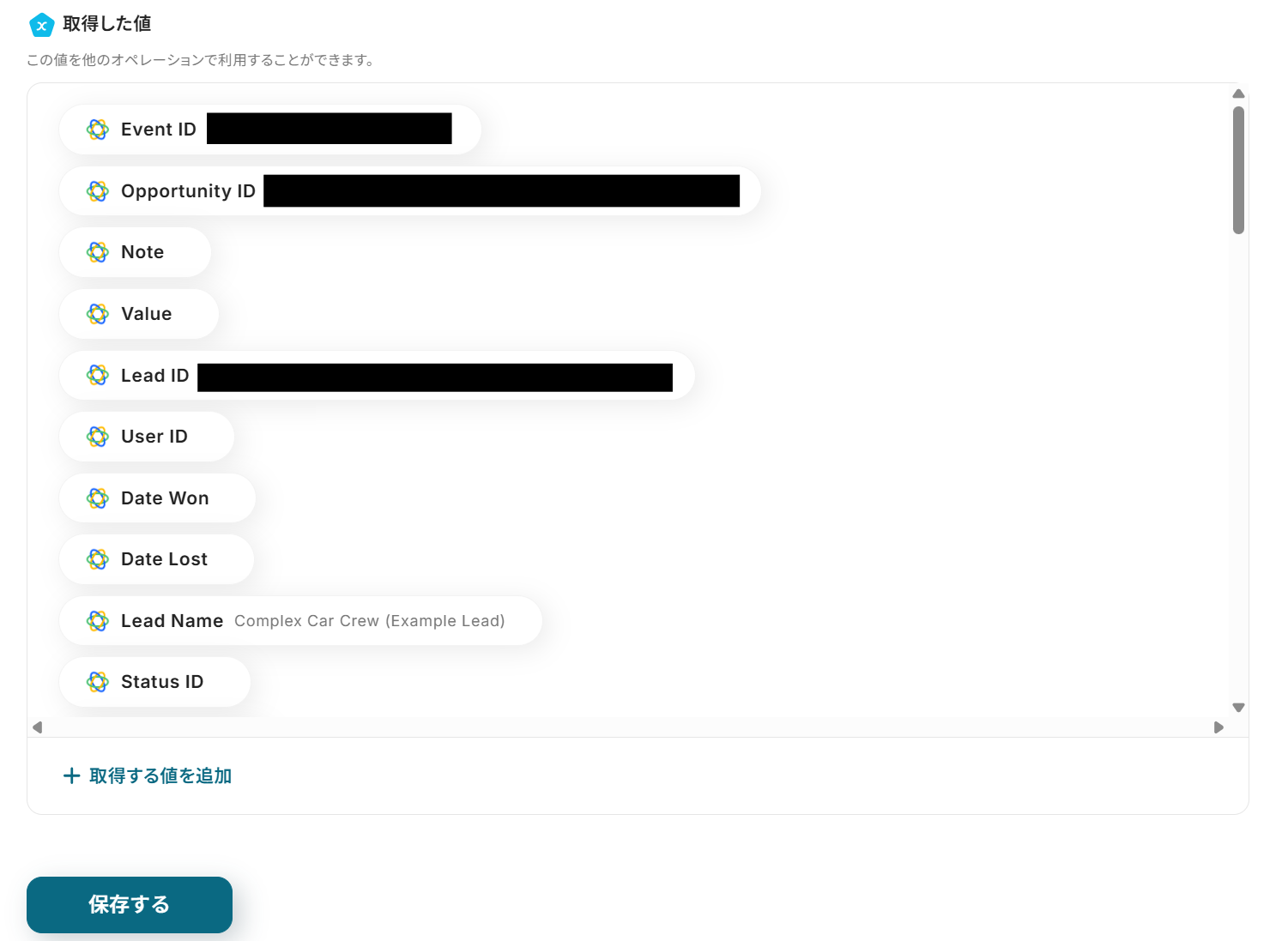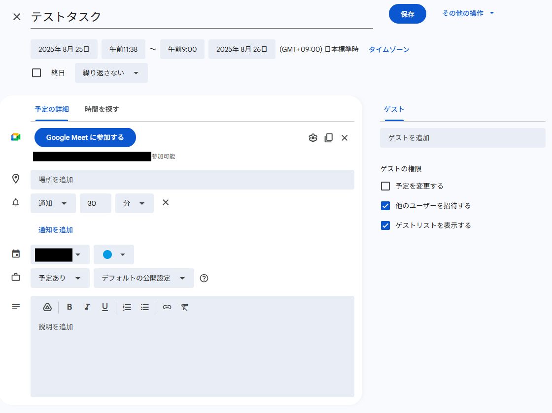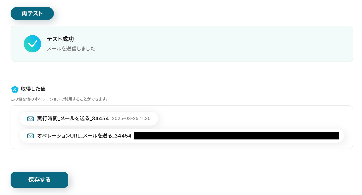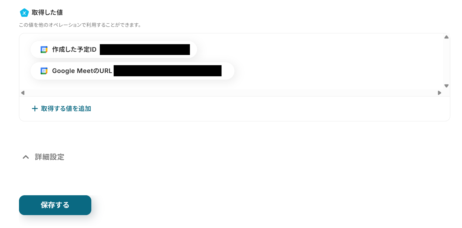 設定、テストが完了したら画面下の保存するボタンをクリックし、Googleカレンダーへの予定作成の設定を完了させてください。