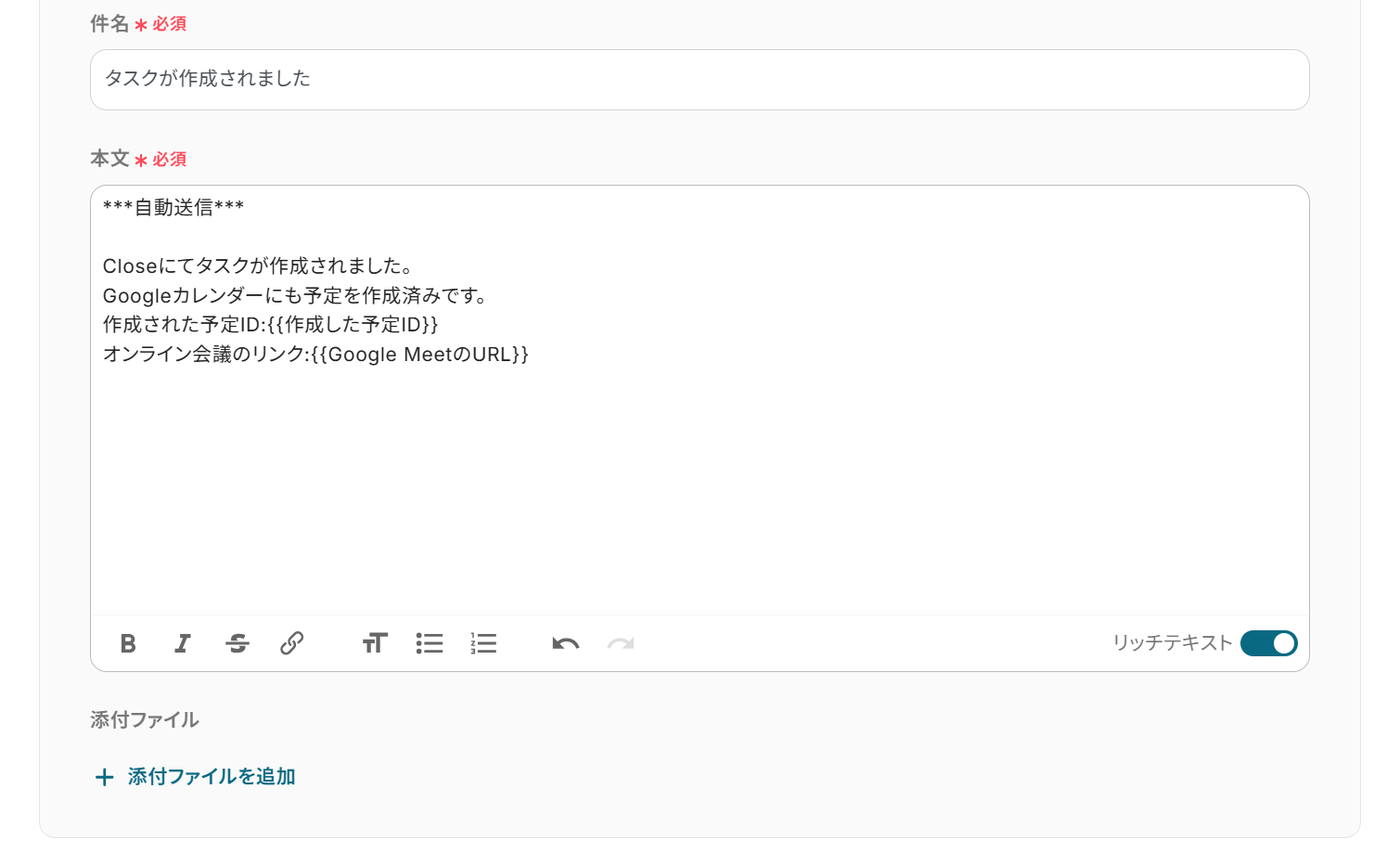 Closeで新しいタスクが作成されたタイミングをトリガーにして、Googleカレンダーに予定を自動で作成し、Gmailで関係者に通知することができます。