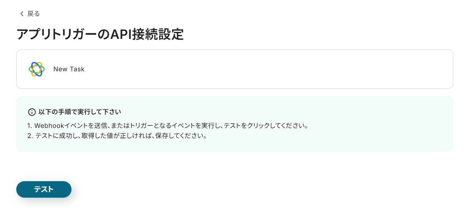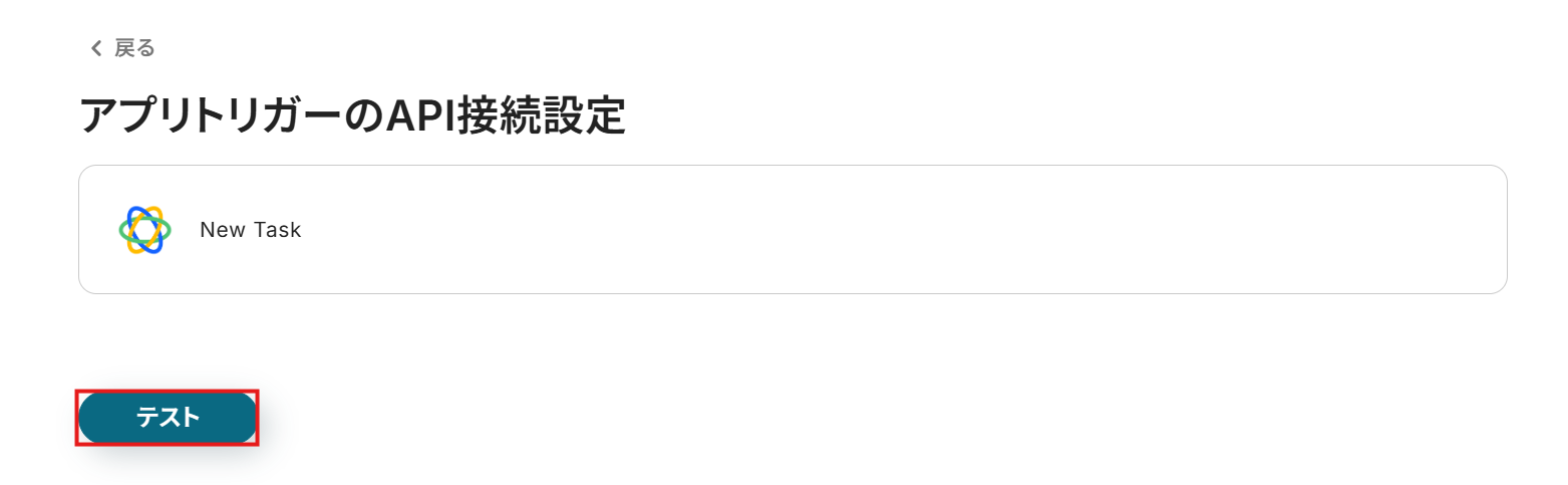 タスクの作成が完了したらテストボタンをクリックしてください。