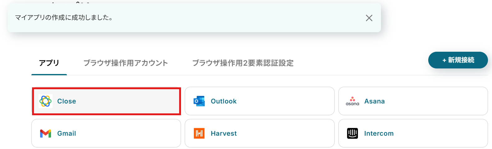マイアプリにCloseが追加されたことを確認出来たら、Closeのマイアプリ登録は完了となります。