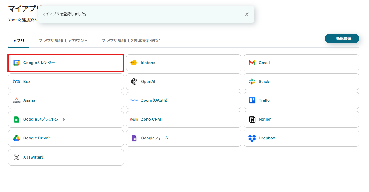 マイアプリにGoogleカレンダーが追加されたことを確認出来たら、Googleカレンダーのマイアプリ登録は完了となります。
