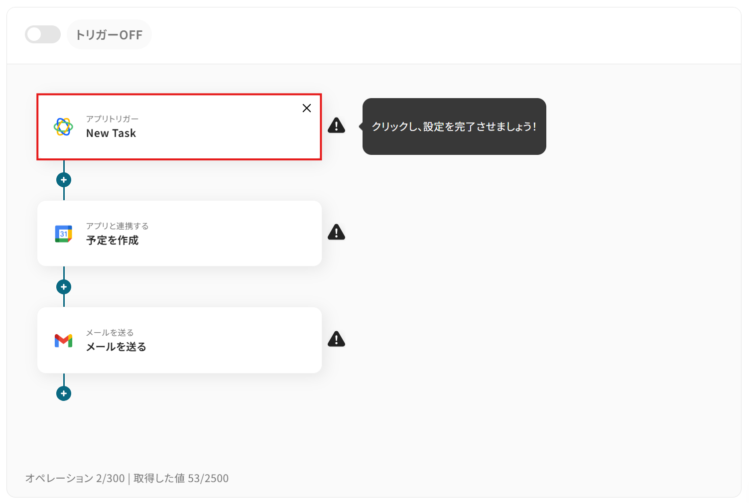 以下の画面が表示されるので、「トリガーをON」をクリックしたら、自動化の設定は完了となります。
