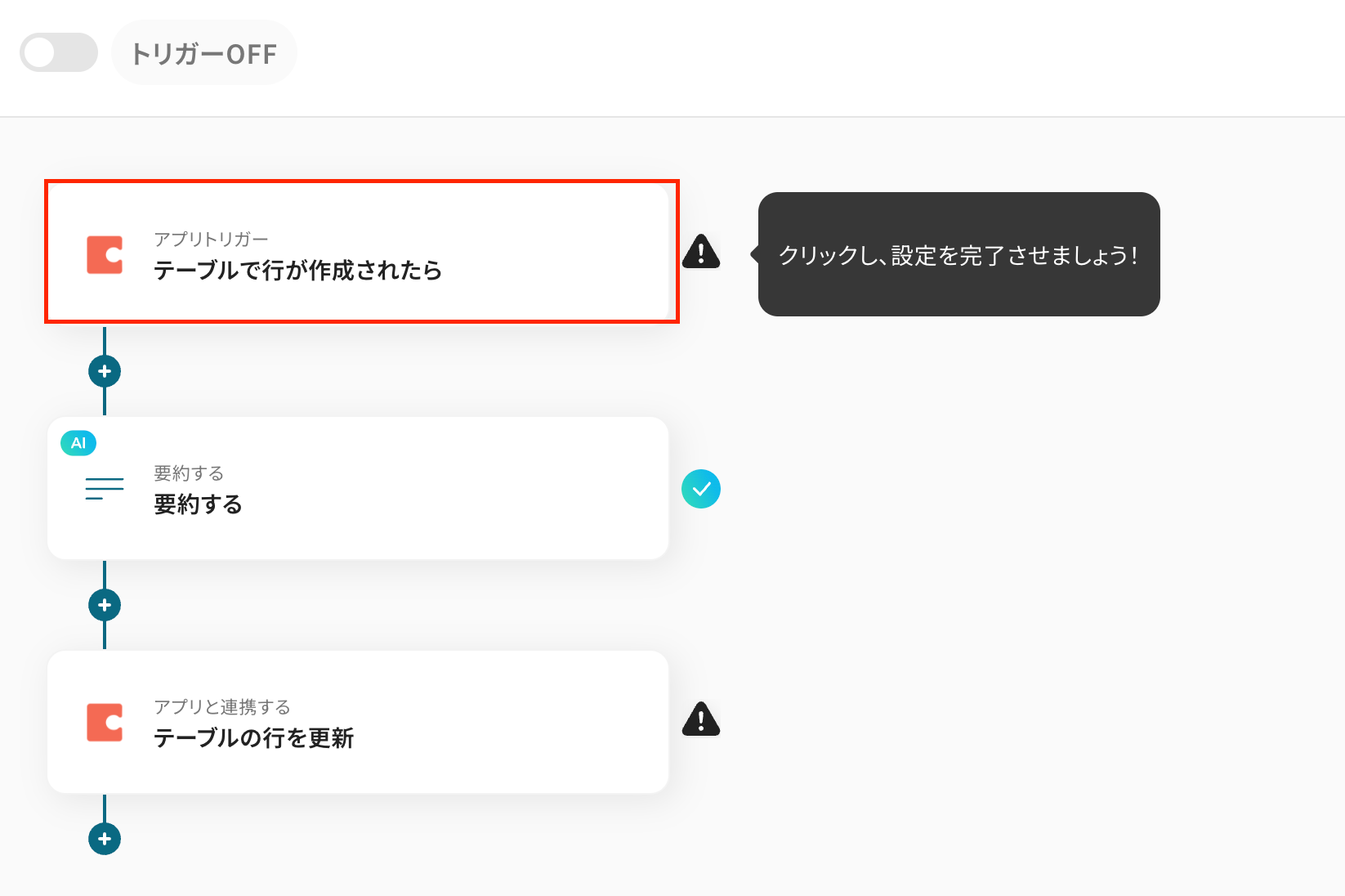 今回は「Codaにテキスト情報が追加されたら、AIで要約してレコードを更新する」フローを作成していきます!