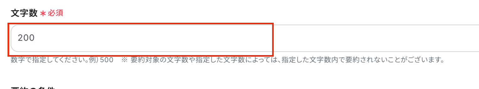 「要約する」オペレーションにある要約の条件に入力することが可能です。