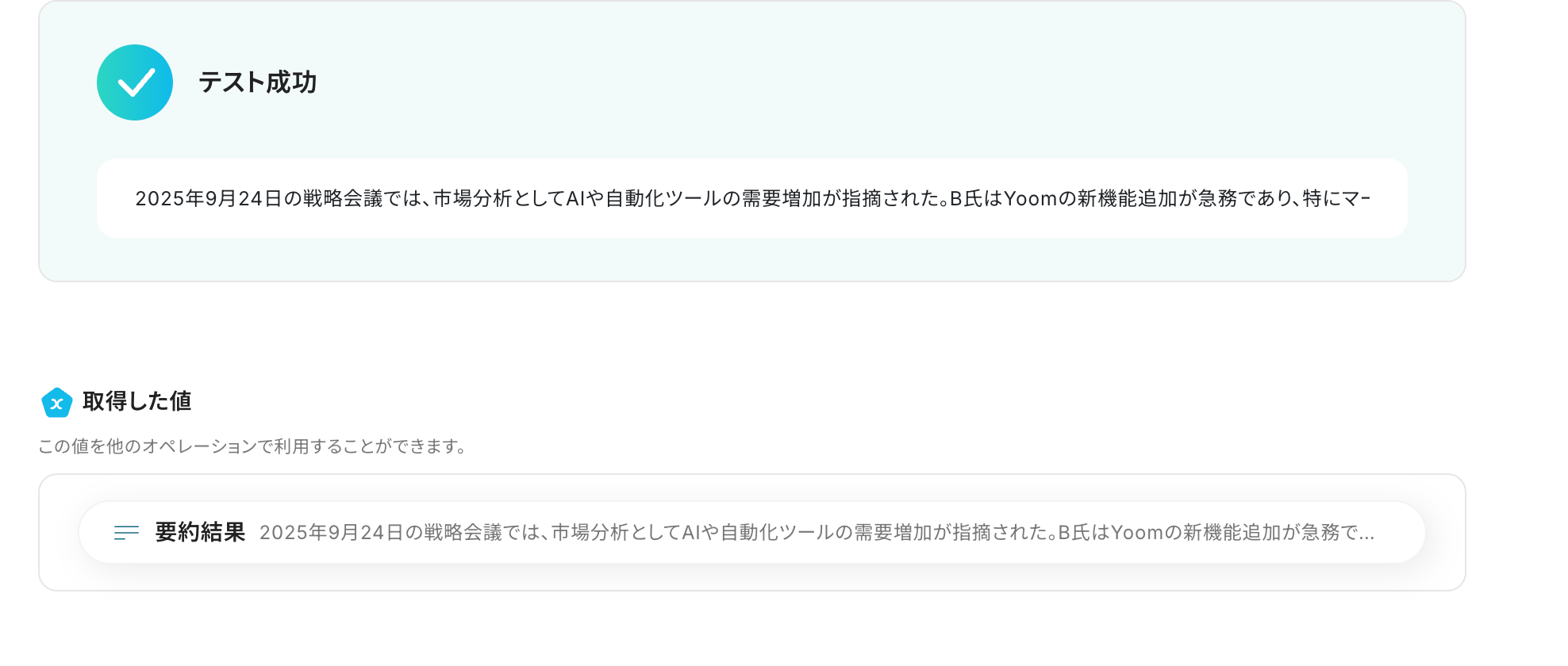 この自動化により、長文の内容を素早く把握し、チーム内での情報共有を迅速かつ効率的に行えるようになります。