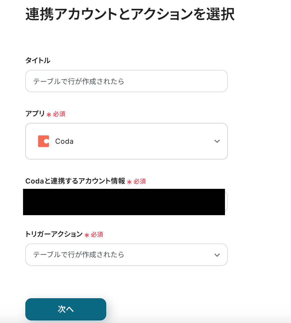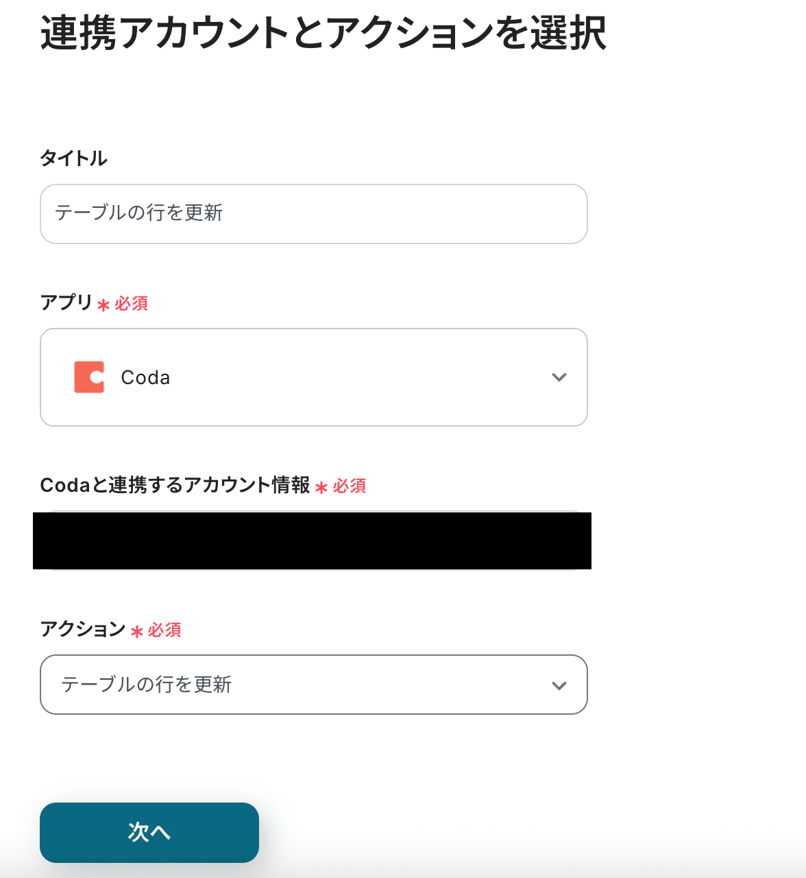 ステップ5:Codaのアクションを設定しよう(テーブルの行を更新)