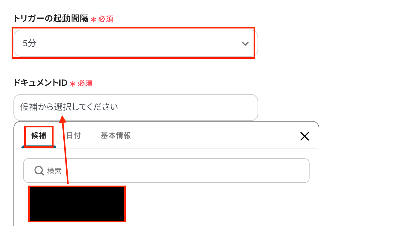 ドキュメントIDとは候補からステップ3と同じものを選択してください。