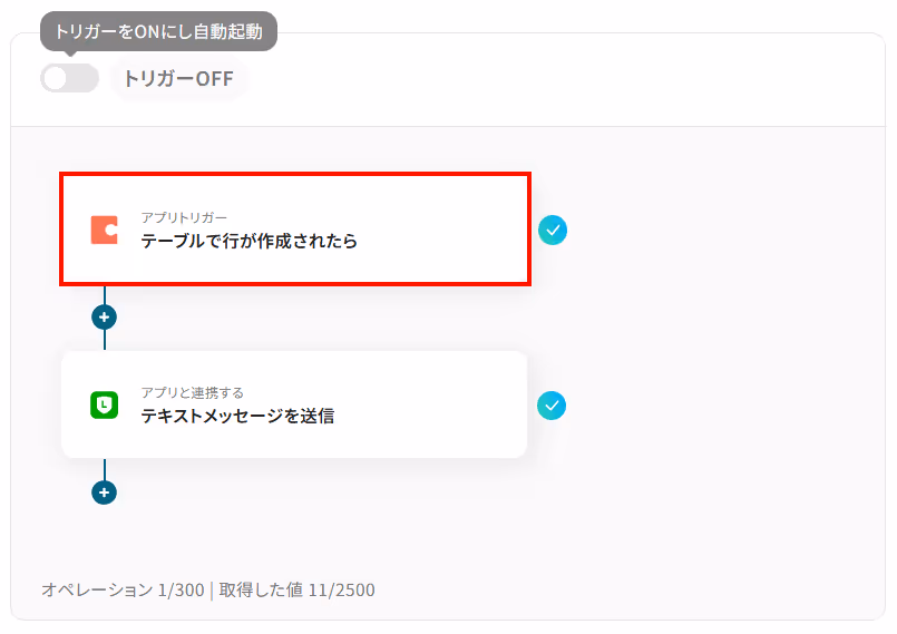 設定が完了すると以下のようなメニューが表示されるので、トリガーをONにします。