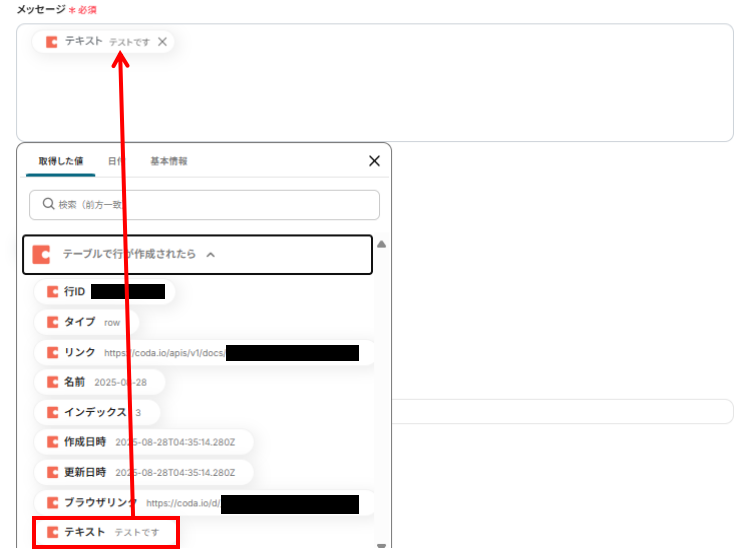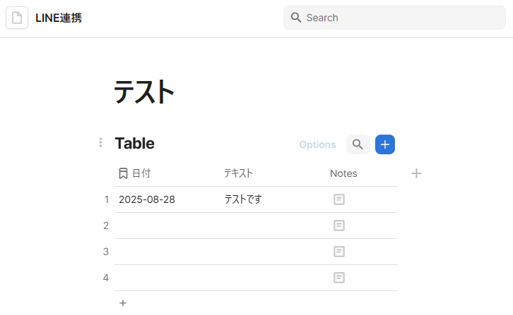 設定が完了したら、実際にCodaでテスト用テーブルに行を追加してみましょう。