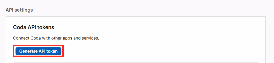 下へスクロールして「API settings」まで移動し、「Generate API token」をクリックします。
