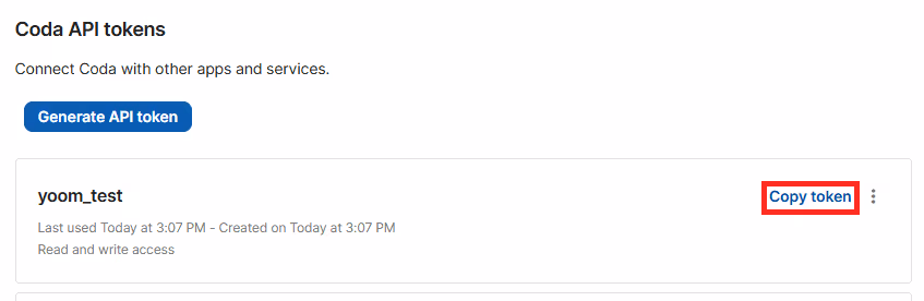 APIトークンが生成されるので、「Copy token」をクリックしてAPIトークンをコピーしましょう。