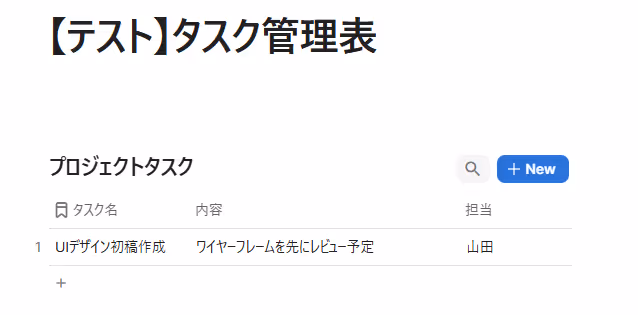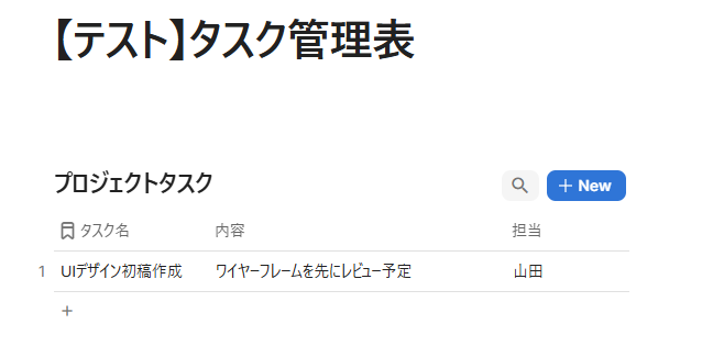 実際にCodaでテスト用テーブルに行を追加してみましょう。