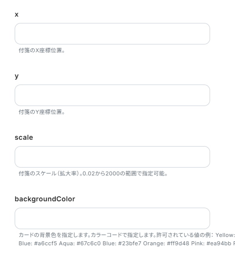 付箋を追加する位置や付箋の大きさ、カードの背景色を任意で設定します。