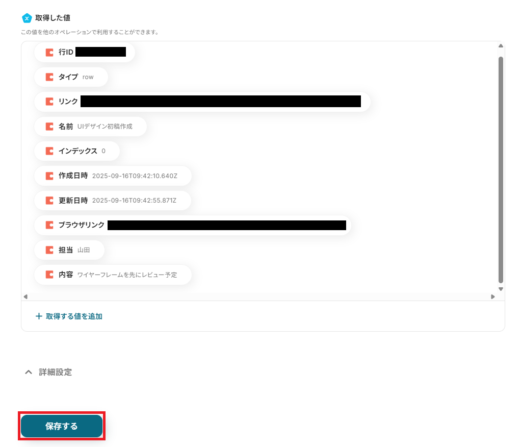 取得された内容を確認後、「保存する」をクリックしましょう。