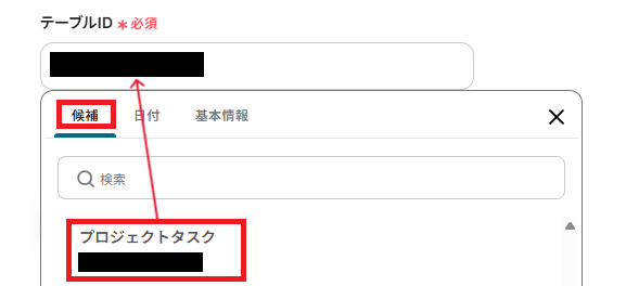 「テーブルID」も、候補から対象のテーブルIDを選択してください。
