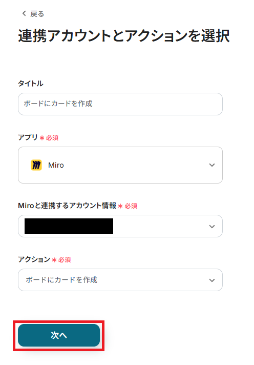 ステップ4:Miroのアクション設定