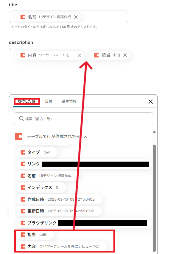 ※取得した値とは、トリガーやオペレーションにて取得した値を指します。