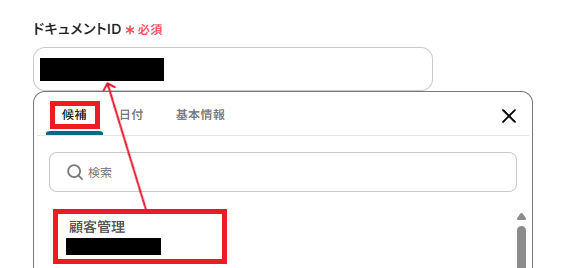 「ドキュメントID」は、候補から連携したアカウント内にあるドキュメントを選択してください。