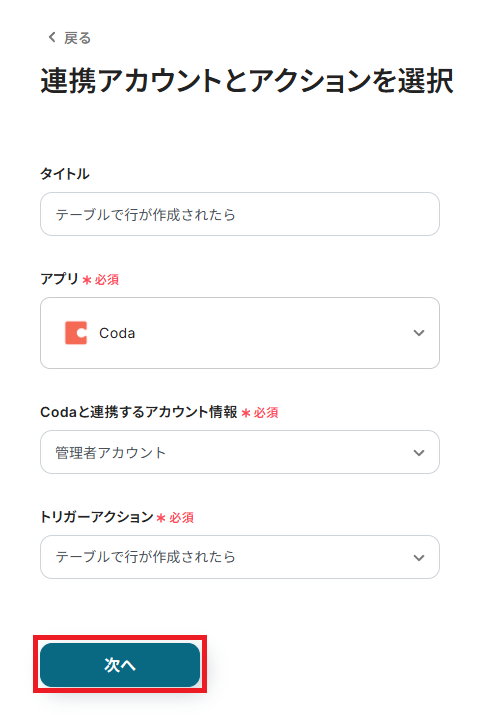 ステップ3:Codaのトリガー設定