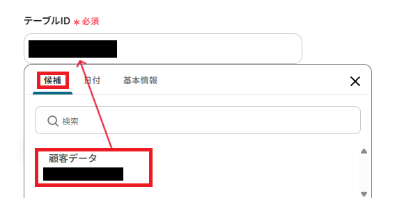 「テーブルID」も、候補から対象のテーブルIDを選択してください。