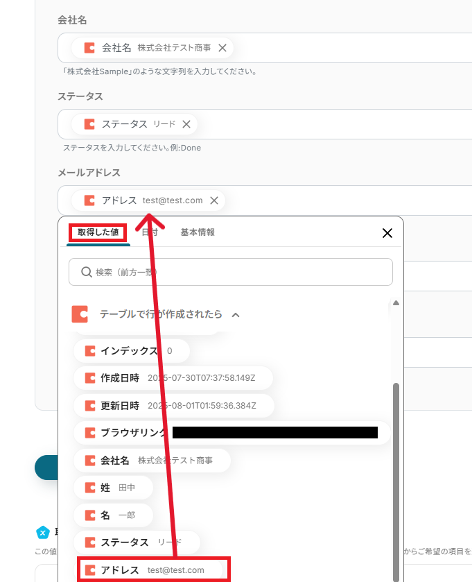 ※取得した値とは、トリガーやオペレーションにて取得した値を指します。