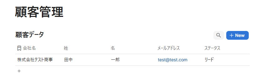 実際にCodaでテスト用テーブルに行を追加してみましょう。