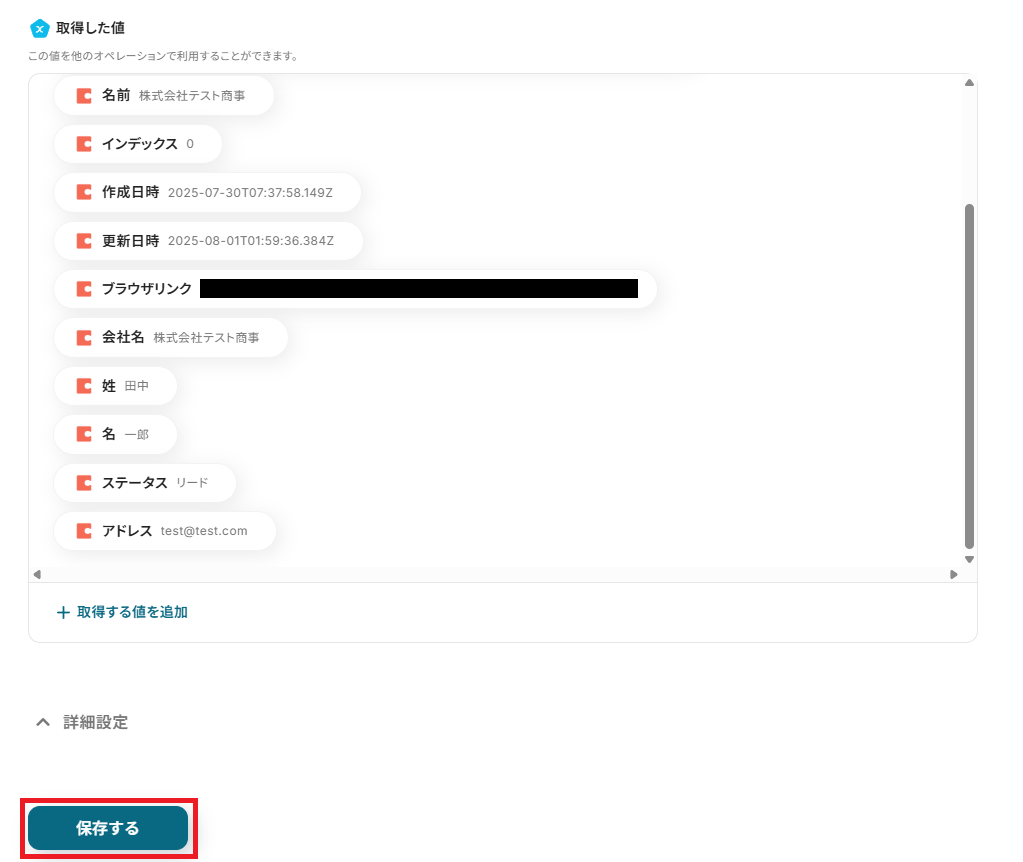 取得された内容を確認後、「保存する」をクリックしましょう。