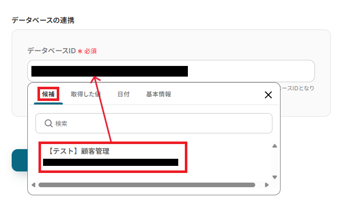 Yoom画面に戻り、「データベースID」を設定します。