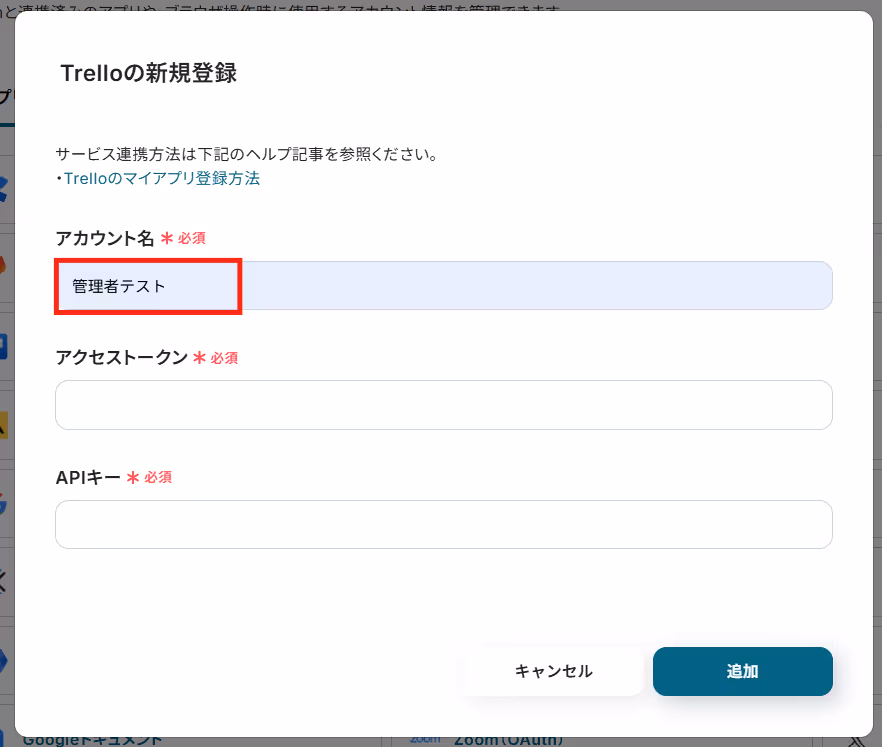 入力が完了したら、「追加」をクリックしTrelloの連携完了です!