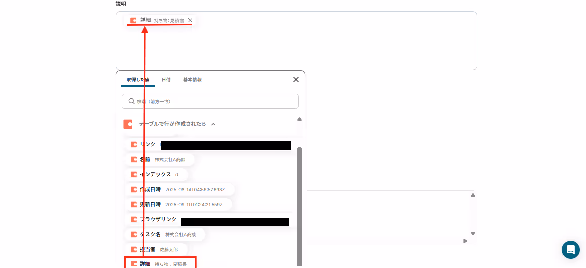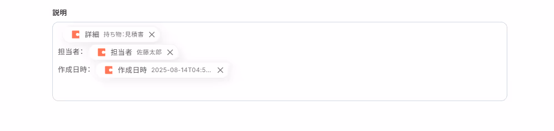 説明も下記画像の通りCodaで設定した「説明」が自動で引用できるように設定されています。