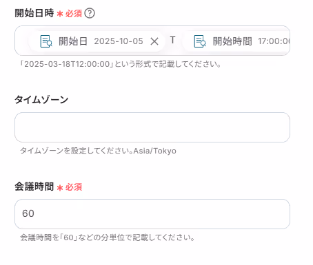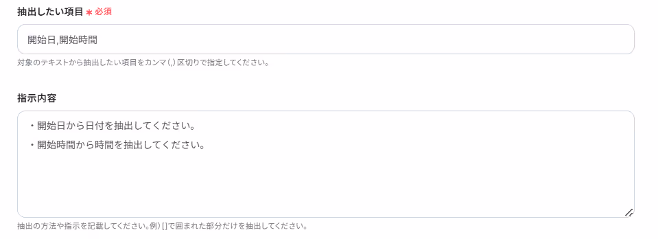 4.開始日時・時間はテキスト抽出した項目を設定します。