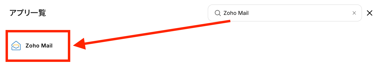 検索欄にZoho Mailと記入して、表示されたアイコンをクリックします。