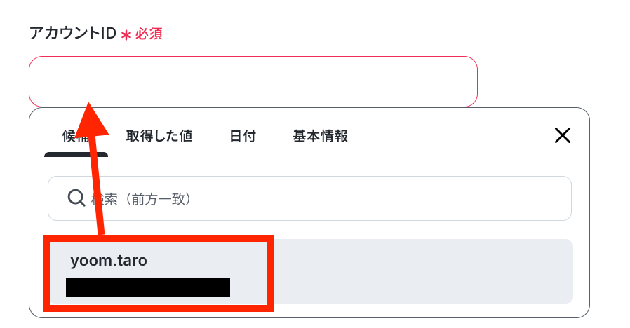 アカウントIDを候補から選択します。