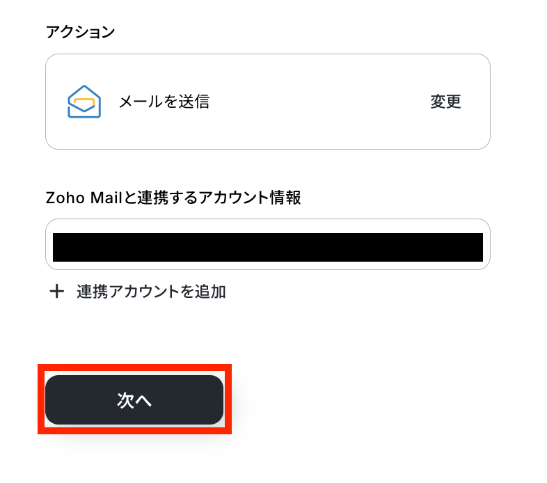 ステップ4:Zoho Mailのアクション設定