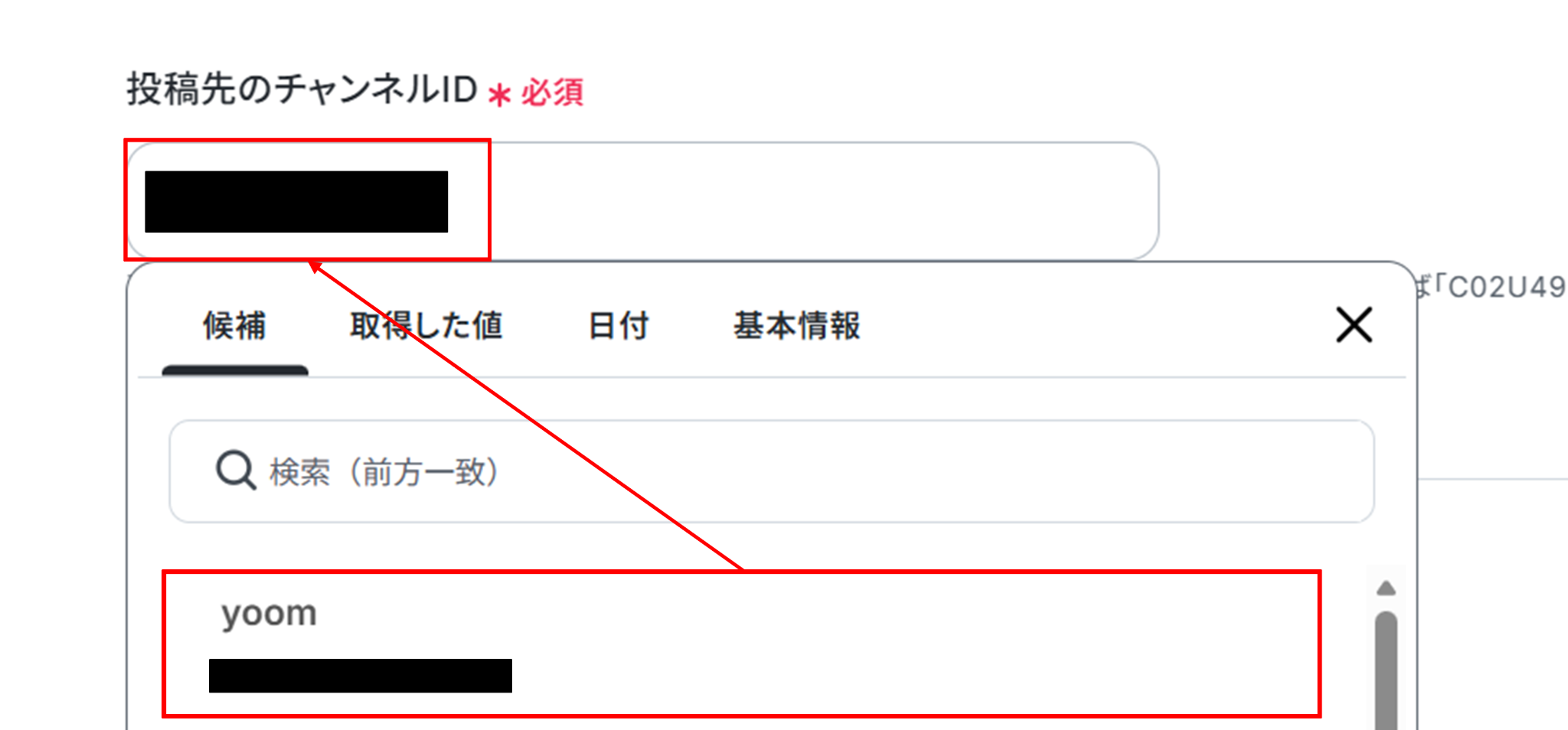 設定が完了したら、投稿先のチャンネルIDを候補から選択します。