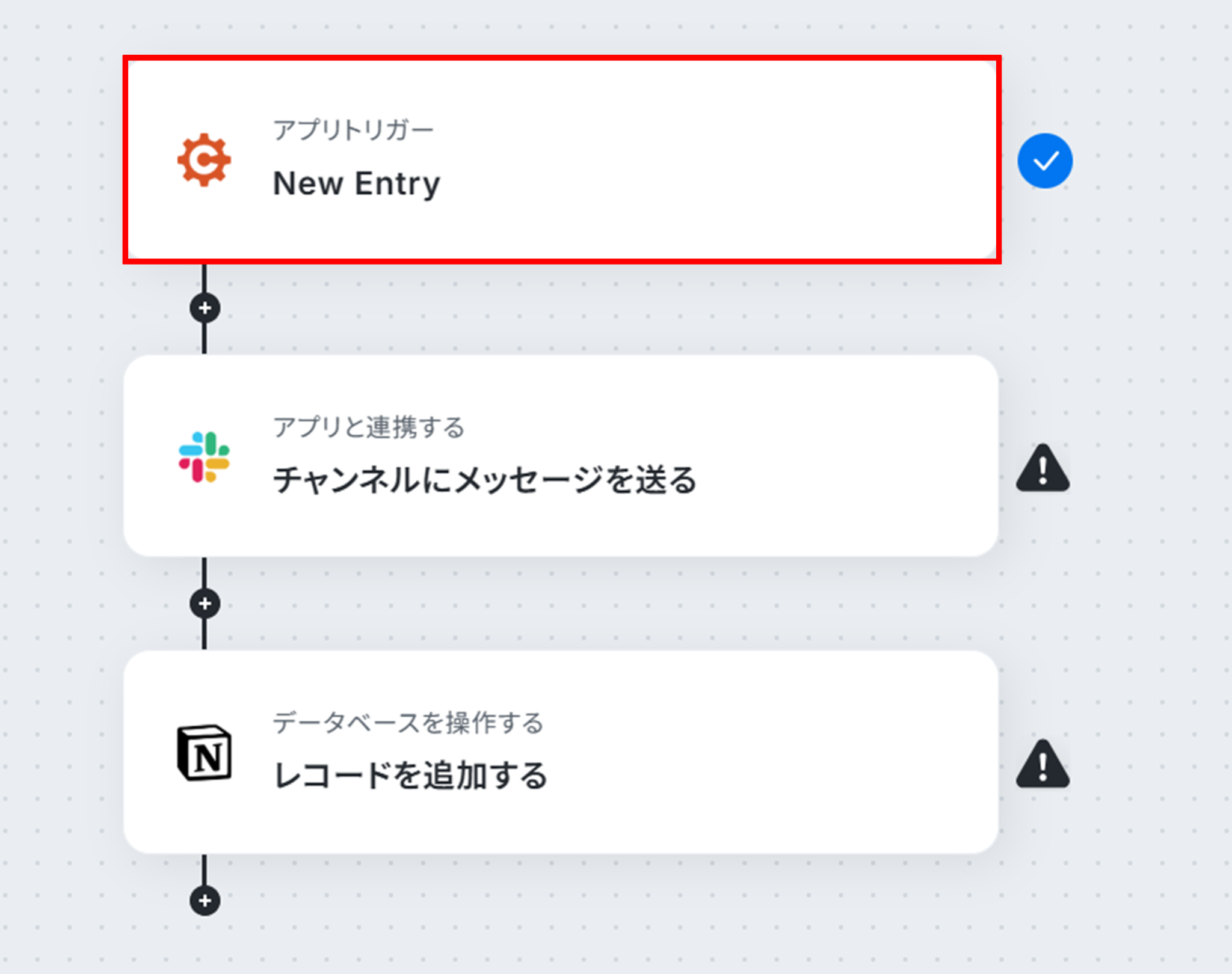 Cognito Formsで新しいEntryを検知したら、Slackへの通知とNotionへの追加を自動化する」フローを作成していきます。