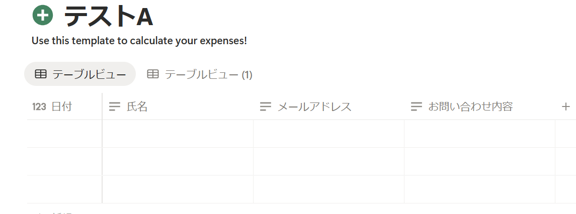 まずNotionに、Cognito Formsと連携するデータベースを作成しましょう。