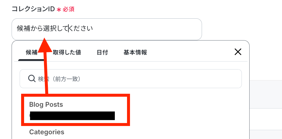 同じく対象のコレクションIDを選択します。