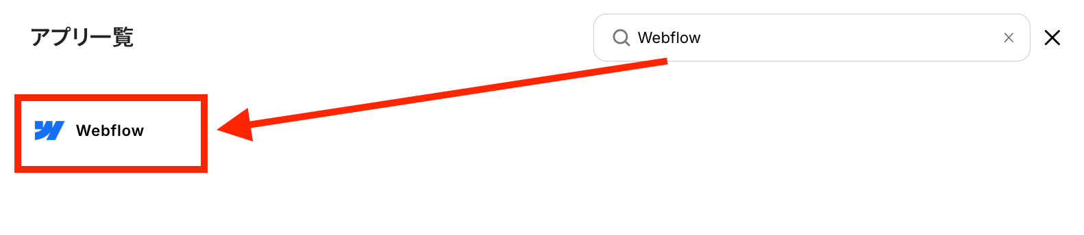 同様に検索欄にWebflowと記入して、表示されたWebflowのアイコンをクリックします。