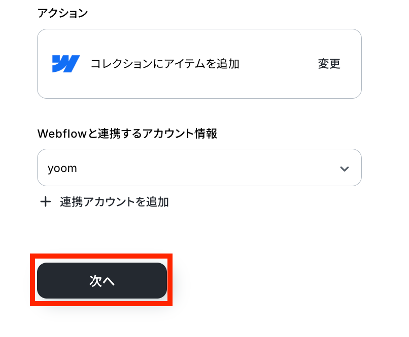 ステップ4:Webflowのアクション設定