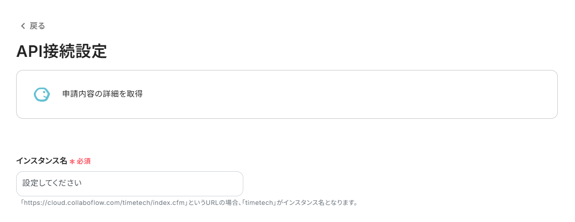 アプリ一覧でコラボフローを選択すると、以下の画面が表示されます。 説明に沿って必須項目を入力し、追加をクリックすると連携が完了です。