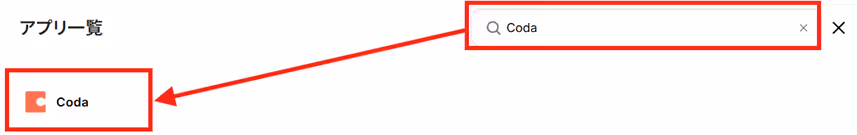 「アプリ一覧」が表示されるので、Codaを検索して選択しましょう。