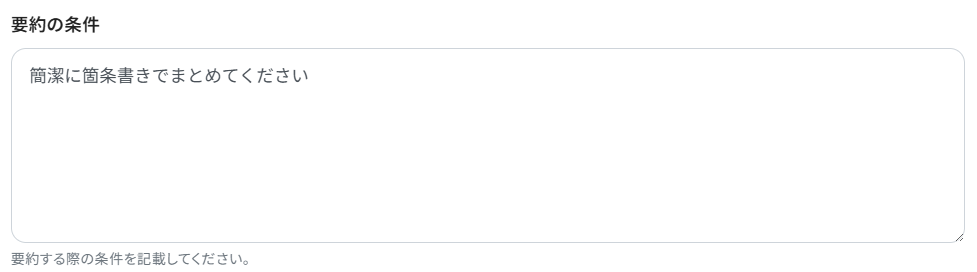 要約の条件は、「簡潔に箇条書きでまとめてください」など自由に設定してください。