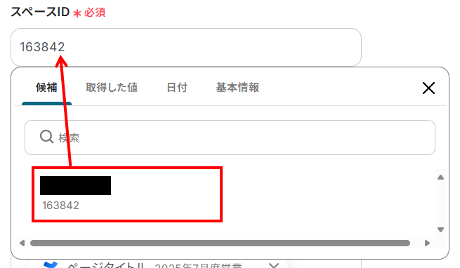 スペースIDも、入力欄をクリックし候補から選択してください。