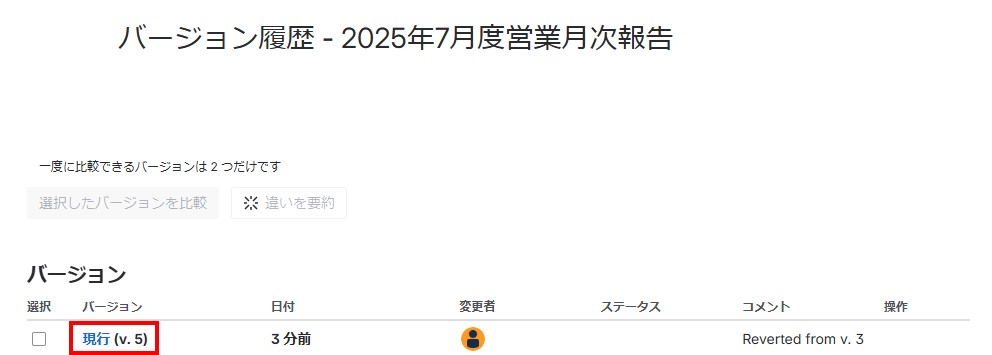 ページを更新する際には、バージョン番号を現在のバージョンより1つ大きく設定する必要があります。