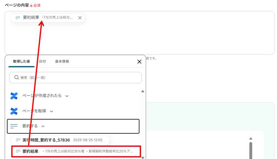 最後に、先ほど要約した内容を基に、Confluenceのページ更新設定を行います。