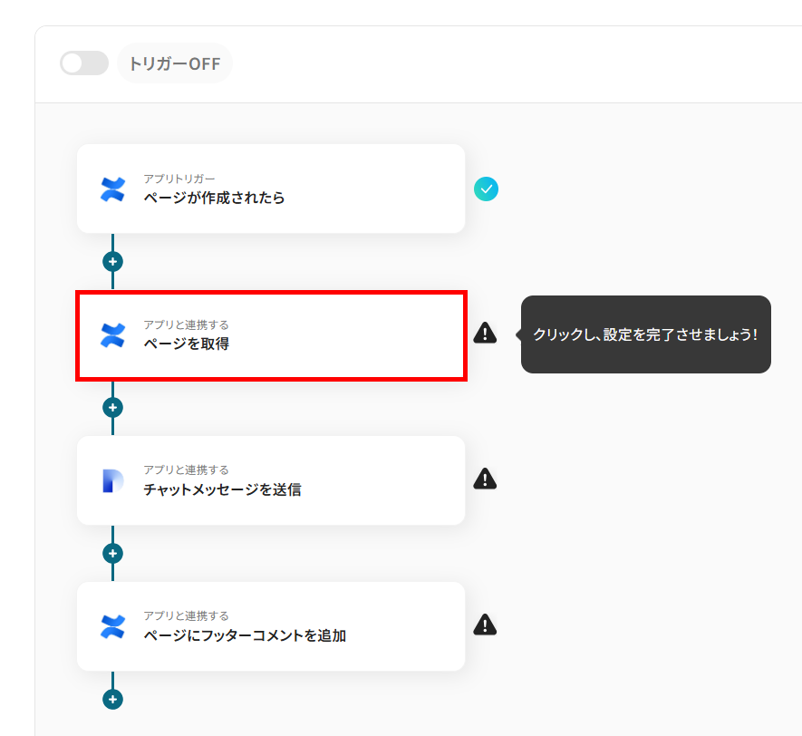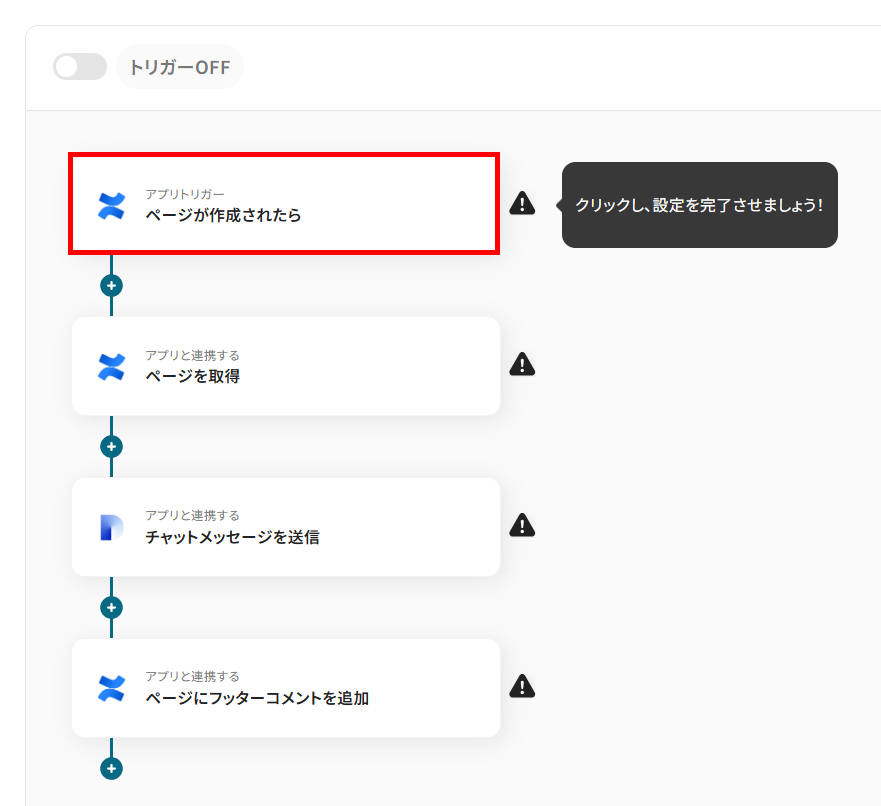 まずは、Confluenceにページが作成された際に、フローボットが起動するように設定を行います。