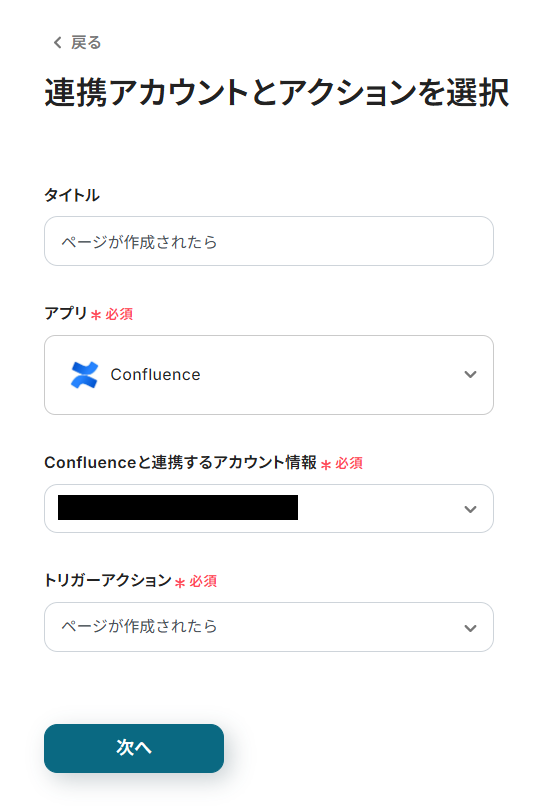 Confluenceのトリガーアクションを「ページが作成または更新されたら」に変更し、その後の設定を行ってください。